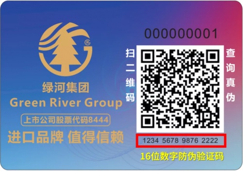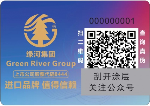 防偽編碼貼由三部分組成:包括綠河logo、綠河官方公眾號和防偽驗證碼。