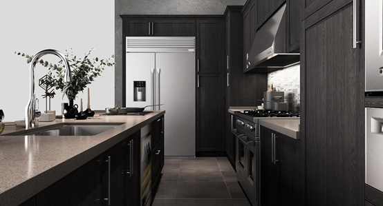 此次在2021博鰲房地產論壇會議上,美睿廚房與美國通用電器共同打造美式風格新產品—“馬蒂爾”,它,自帶高級深邃的氣質,給人以無限遐想。櫥柜產品精選美國頂級橡木制作的實木門板,簡潔大氣的門型外觀,高光銀色拉手點綴于黑色漆面,深邃又活潑,時髦又復古。門板采用半開放油漆工藝,將實木獨有的粗獷紋理呈現眼前,且觸感溫潤細膩。廚房電器采用的是美國原裝進口的monogram系列??梢哉f,這是一套精心打造, 360°全方位盡顯頂級美式氣質的貴族產品。