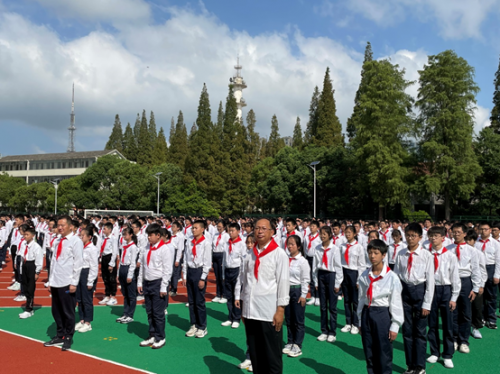 實驗中學團員、隊員們高唱團歌、隊歌,重溫入團誓詞、入隊誓詞,以不負時代、不負韶華的奮進姿態,開啟新征程。