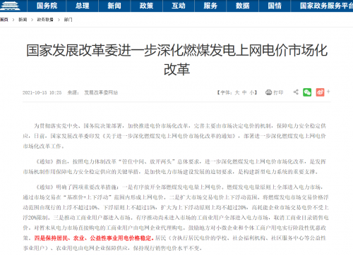 近日,國家發(fā)改委發(fā)布《關于進一步深化燃煤發(fā)電上網電價市場化改革的通知》,明確指出民生用電不漲價,給我們吃了一顆定心丸!