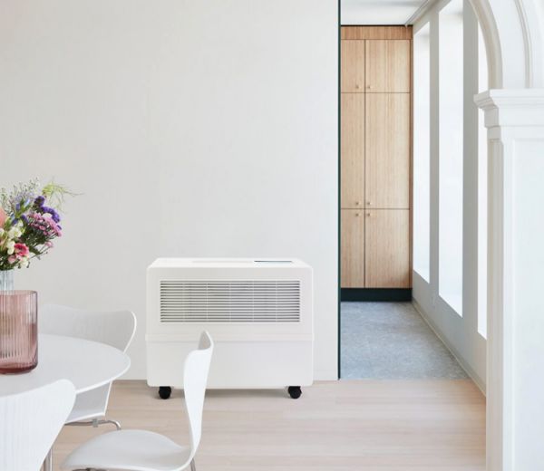 抱著加濕器的女性,可能要說明這臺加濕器很輕便;
