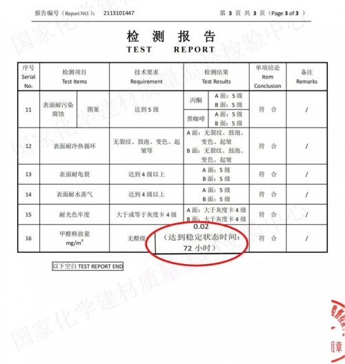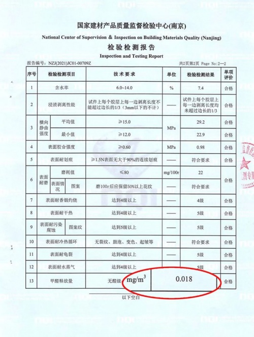 圖為千年舟天然豆香生態(tài)板檢測報告