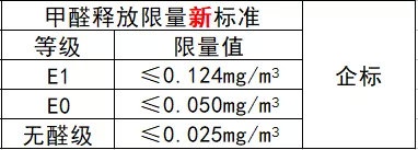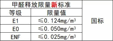 在即將實施的新國標中,將室內(nèi)芯材甲醛釋放量按照限量值分為E1級、E0級和ENF(無醛添加)三個級別: