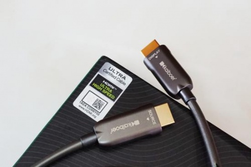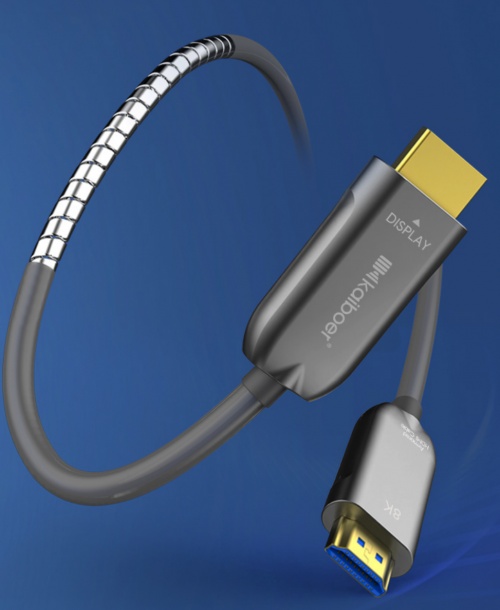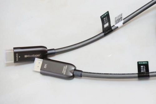 開博爾五代萬兆光纖HDMI2.1高清線插口為銅殼鍍金材質制成,具有防磨耐用等特點,鍍金接口對信號的傳輸穩定也起到一定的好處。由于產品采用的光纖技術,而光纖又具有收發順序,所以在使用過程中,比銅線要麻煩點,不過產品接頭上已經做好標注Source、Display接口,讓用戶一目了然。