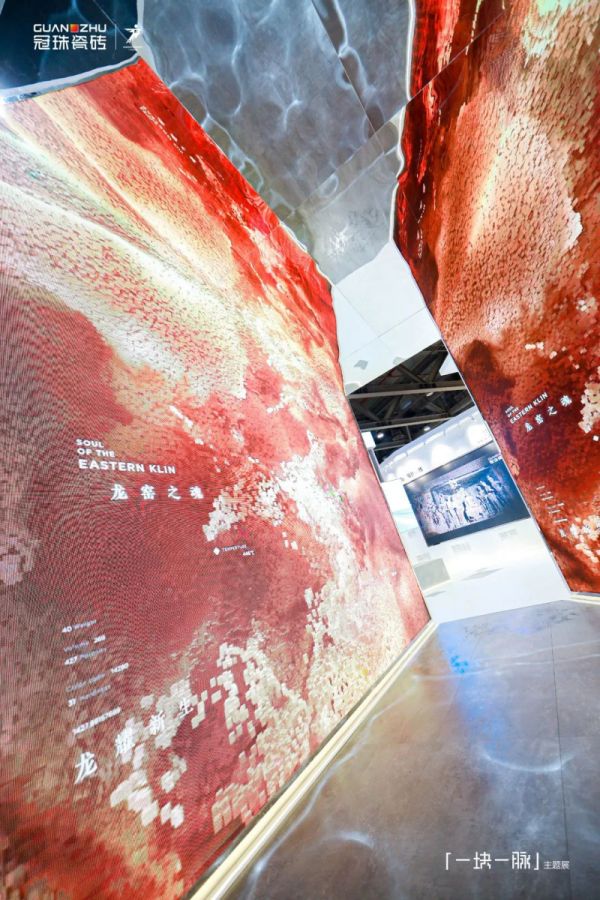 在展會入口處,你會與這震撼的“數(shù)字窯洞”相遇。創(chuàng)新表達東方傳統(tǒng)元素——水、火、土影像,以數(shù)據(jù)影像裝置「龍窯之魂」帶你走進千年龍窯的奧秘。以數(shù)據(jù)影像、鏡面、巨屏還原獨特深邃的古法窯洞制陶過程,配合水、火、土、釉在窯爐里碰撞蝶變的聲音,身臨其境感受瓷磚窯寶的制作底蘊。