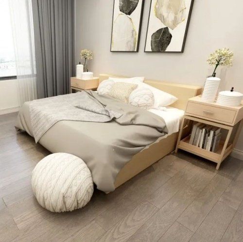 在地板選擇上,通常選擇以中性色為主,例如久盛原木色、灰色系地板等,利用木材本身的質感和天然的紋理,與巧妙的設計相融合,展現出清新樸素的自然之美。