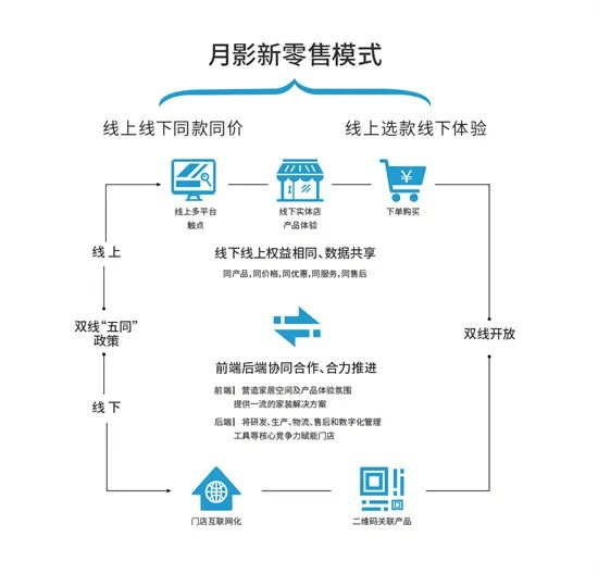 月影家居打造五同互聯(lián)的新零售模式,線上店鋪與線下門店互通,實現(xiàn)線上線下同產(chǎn)品、同價格、同優(yōu)惠、同售后、同服務,線上線下權益相同,有效構建線上線下互補的良好生態(tài)。