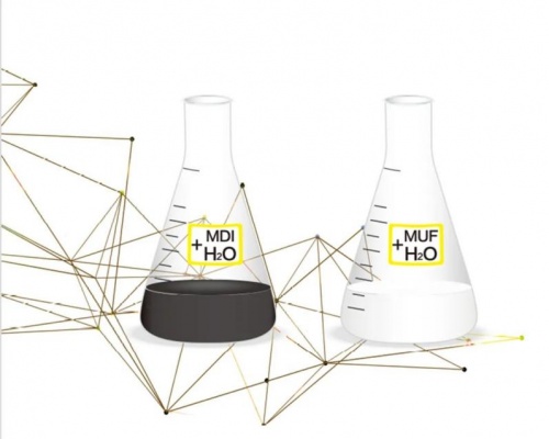 2、MDI膠不溶于水,遇水分層,有效防水防潮,制得的板材可應用于廚房和衛生間,可做室外材;