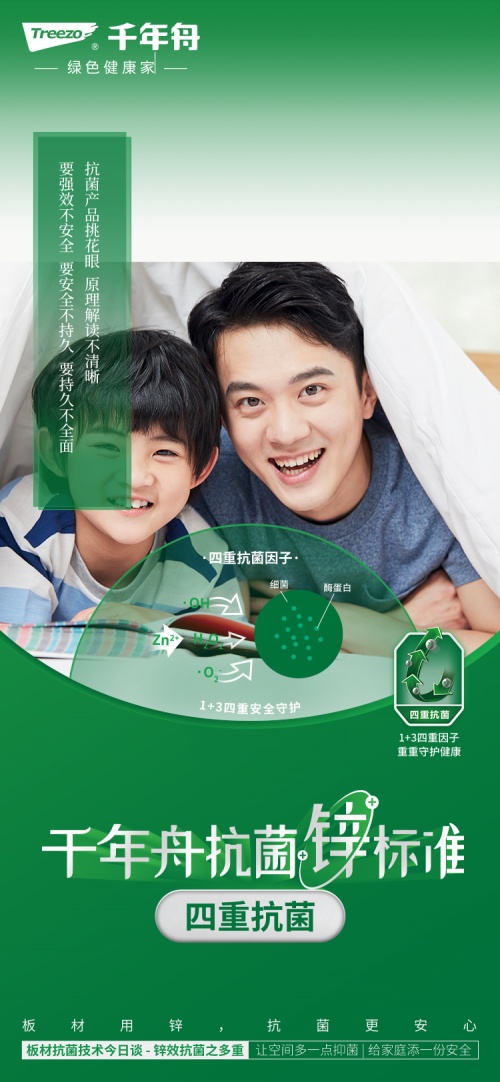 隨著經濟發展和科研技術的不斷迭代升級,人們的健康素養得以快速提升,有氧運動成為時尚,養生成為社交話題,空氣質量與消殺成為日常關注焦點。也隨之對抗菌產品提出了更多的要求,在這樣的背景下,千年舟家業首推的鋅效抗菌技術,從高效、安全、長效、多重四個維度詮釋了全面四邊形抗菌的鋅標準。