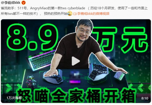 CYBERVERSE全家桶包含怒喵人體工學分體鍵盤 AM HATSU 藝術家 SHEK 手工涂繪做舊版、怒喵 CYBERMAT R2 無線充電魔毯等怒喵硬核科技產品,怒喵首款 TWS 耳機 CYBERBLADE 也在其中。不過,在本次開箱中,李楠并沒有為我們直接展示 CYBERBLADE 的外觀細節,只表示這是一款努力了十八個月、想要打敗蘋果的 TWS 耳機新品。